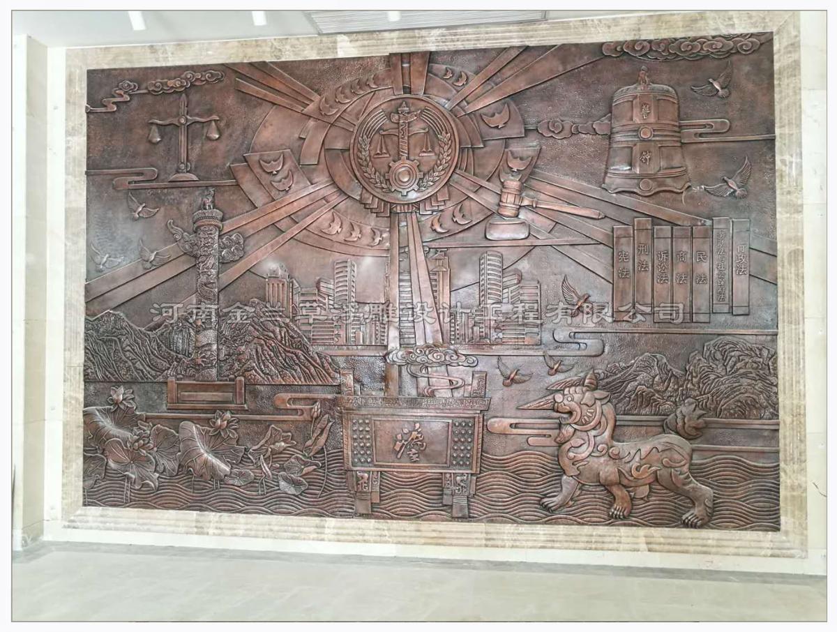 法院清廉浮雕墻因為裝飾需求,大堂浮雕墻在法院清廉浮雕墻的裝飾中運用較多,浮雕質(zhì)感古樸典雅,大方美觀,